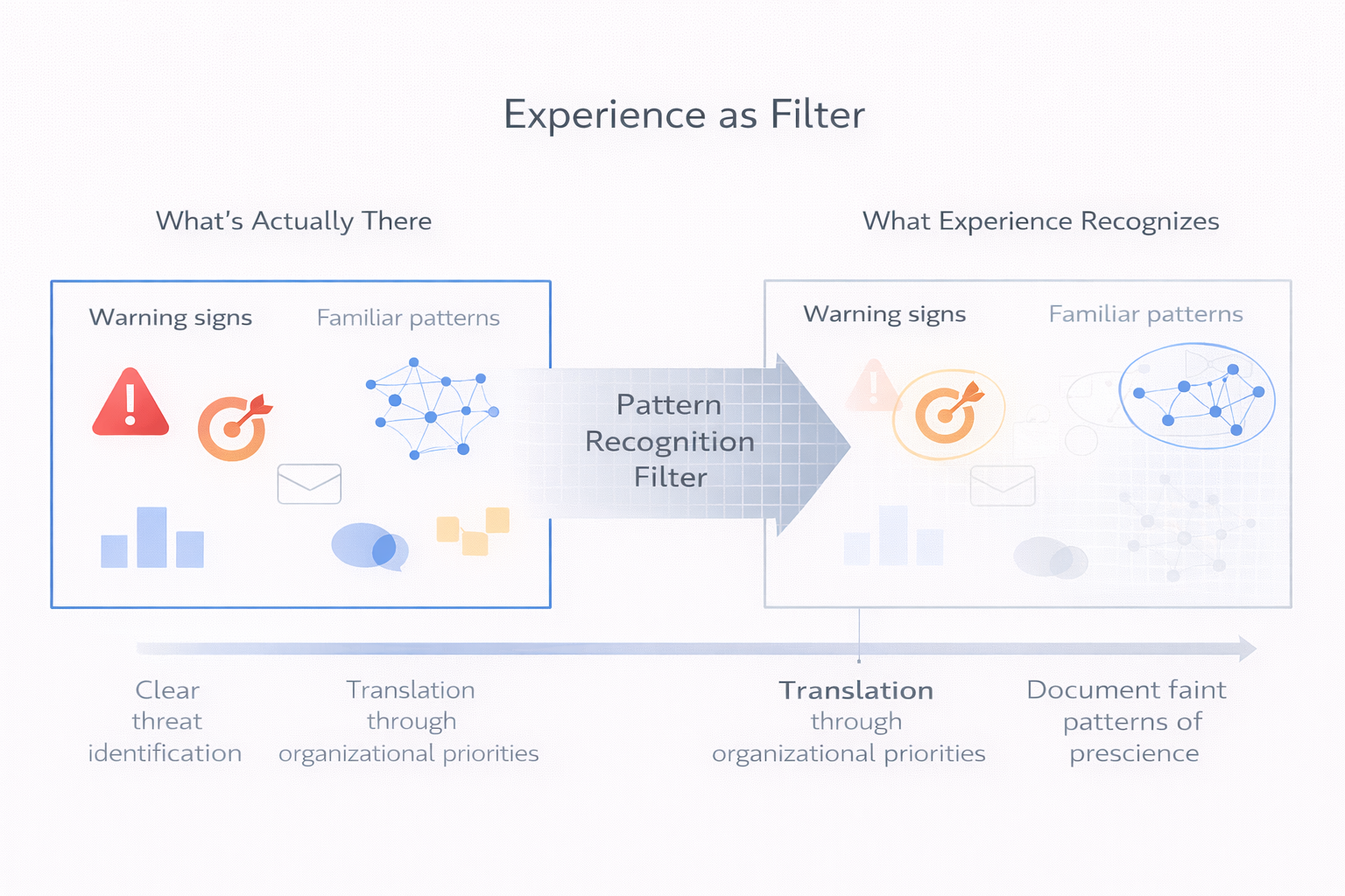 These signals get filtered out—not because they're invisible, but because they don't fit the pattern that experience has already identified.